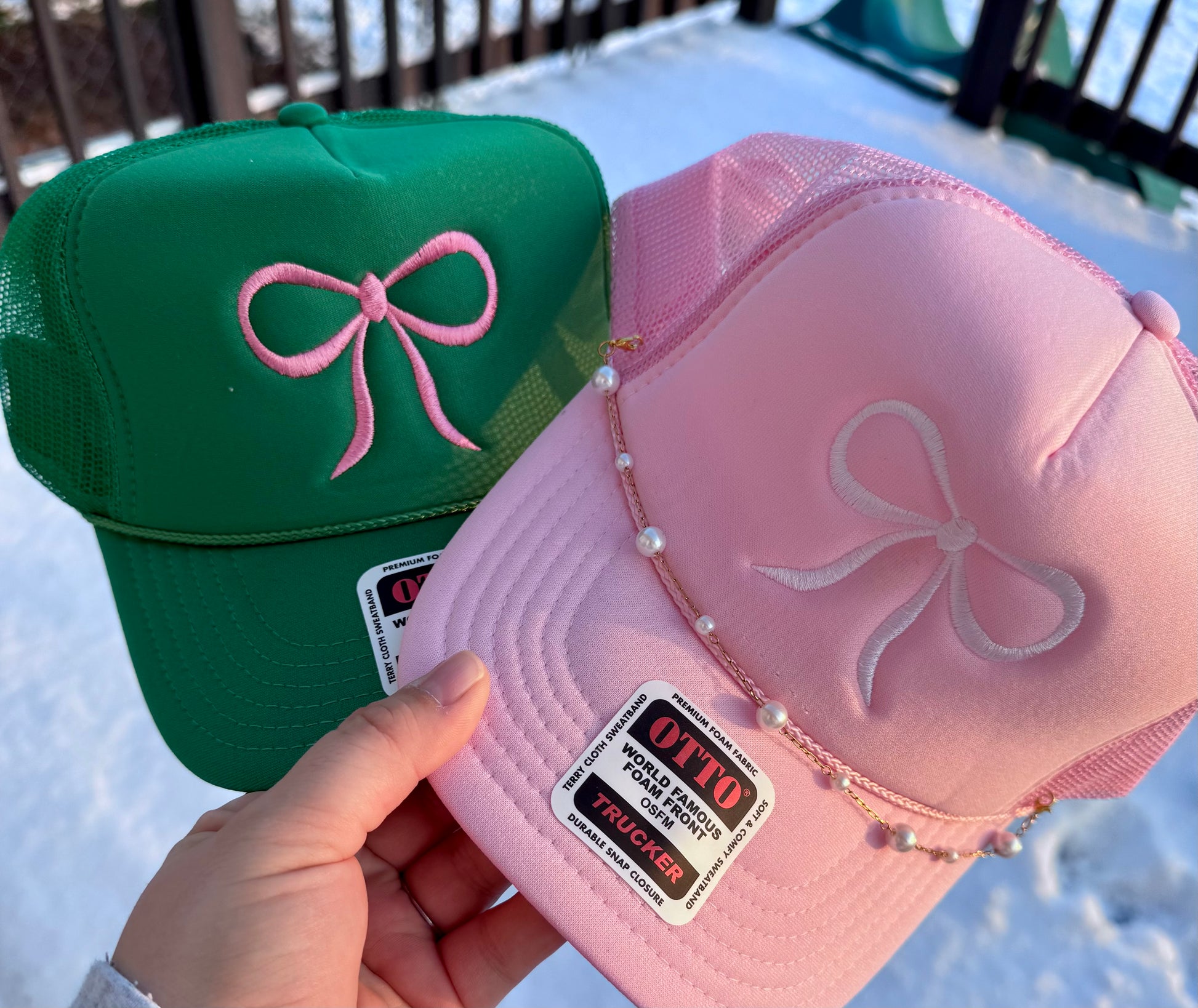 The Trucker trend is so cute, top it off with a bow and you're good to go!
