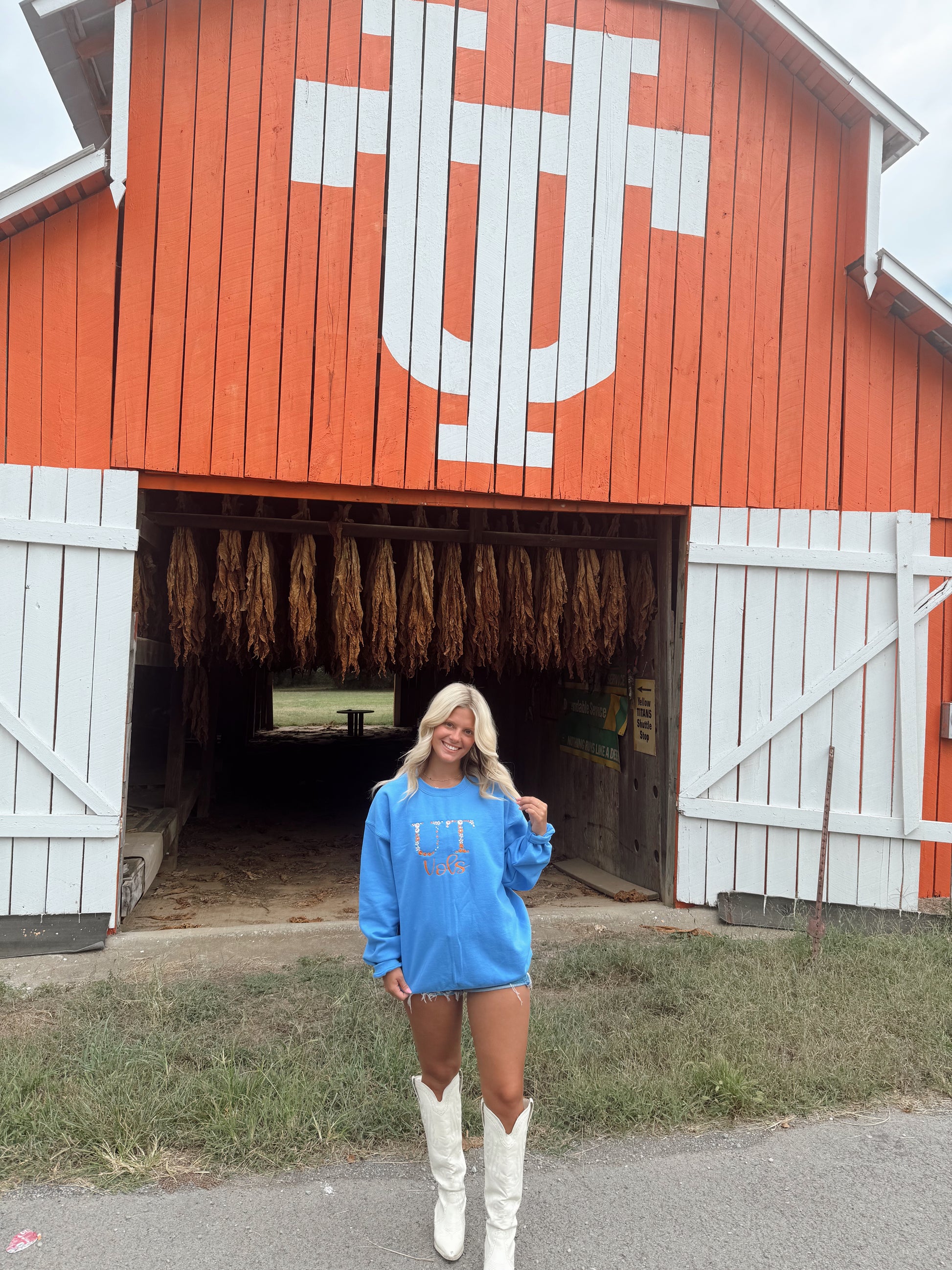 Rep the Vols in comfort and style with this Carolina blue oversized sweatshirt. Made on a soft Gildan crewneck, it features clean embroidery that proudly displays “UT Vols” across the front. Perfect for gameday in Knoxville, tailgates, or casual weekends, this sweatshirt blends a relaxed fit with classic Southern spirit.