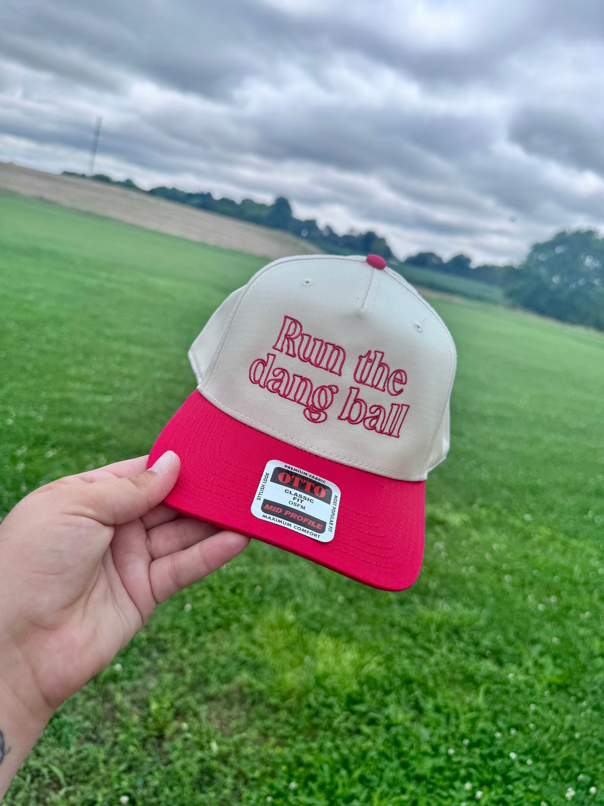 Crank up the grit this football season with our “Run the Dang Ball” Otto 5-Panel Hat — a bold statement for those who believe in old-school, smashmouth football. This structured snapback features a rich red crown paired with a tan flat bill for a classic, clean look that stands out on game day.