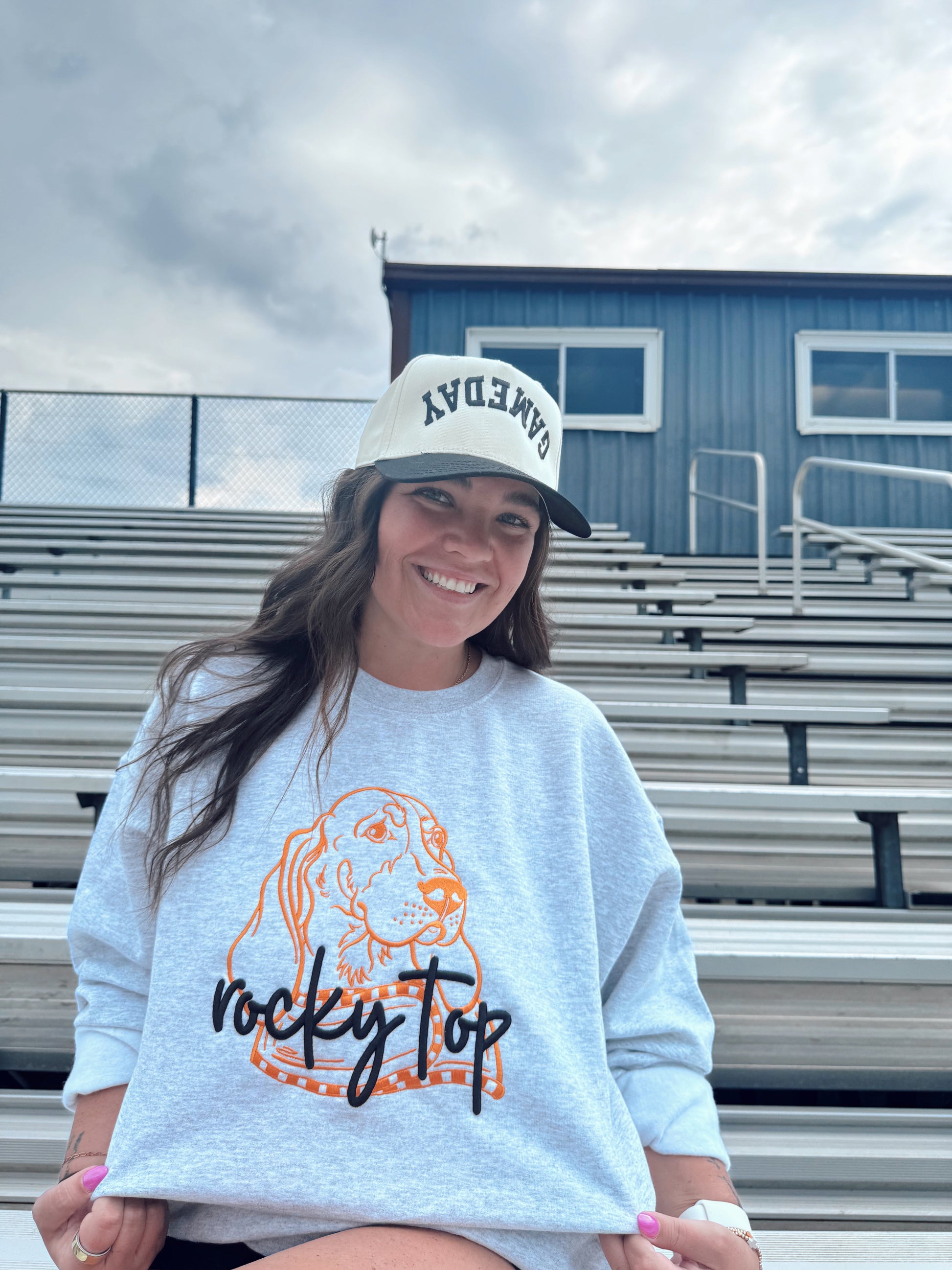 Show your Tennessee pride loud and clear with our Rocky Top Smokey Crewneck. Featuring the beloved mascot Smokey front and center, this sweatshirt brings the spirit of the Vols to life. The “Rocky Top” lettering is stitched in bold puff embroidery, giving it a standout 3D effect that makes your game day fit pop.