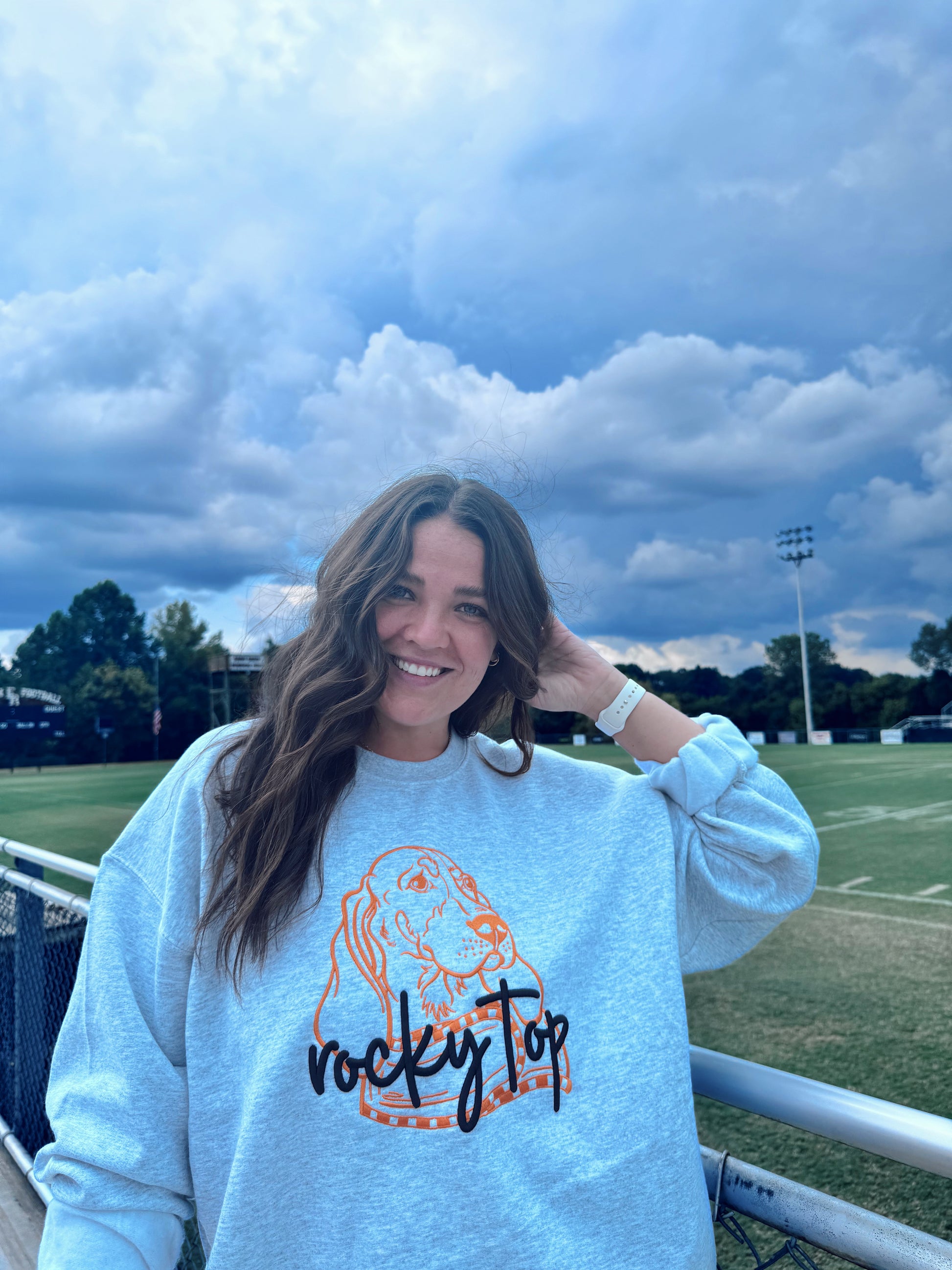 Crafted on a soft ash-grey crewneck, it’s the perfect balance of cozy and spirited — ideal for football Saturdays, tailgates, or just reppin’ Rocky Top year-round.